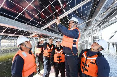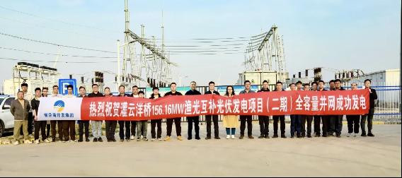 2025年4月23日,由江苏沿海碳资产管理有限公司投资建设的洋桥二期156MW渔光互补项目提前达成全容量并网。此项目为省沿海集团“十四五”重点项目,创造了当年注册项目公司、当年开工且120天建成并网的“沿海速度”,成为碳资产公司党建与业务深度融合的鲜活范例。